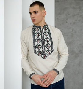 Experience the rich cultural heritage with our Ukrainian men's Vyshyvanka "Podillia"! This traditional garment is made with high-quality unbleached linen blend fabric and adds a touch of heritage to your wardrobe. Adorned with beautiful black and red and a touch of green embroidery, it's perfect for special occasions or casual wear. Embrace the beauty and tradition with our iconic Vyshyvanka!
